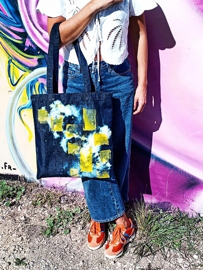 Et pour les tote bags en jean, place à la personnalisation 🎨 : tie & dye, peinture, motifs originaux… chaque sac devient une pièce unique, pleine de caractère.